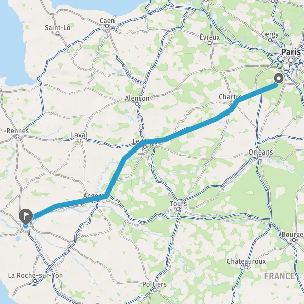 Prendre à droite et rejoindre A11 E50. Continuer sur 147 kilomètres