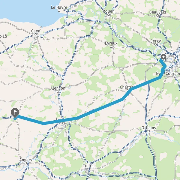 Prendre à droite et rejoindre A11 E50. Continuer sur 142 kilomètres