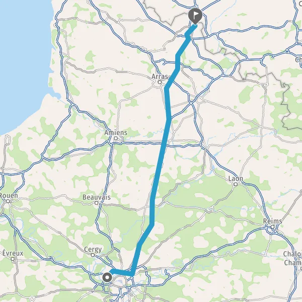 Continuer E19 (Autoroute du Nord) sur 124 kilomètres