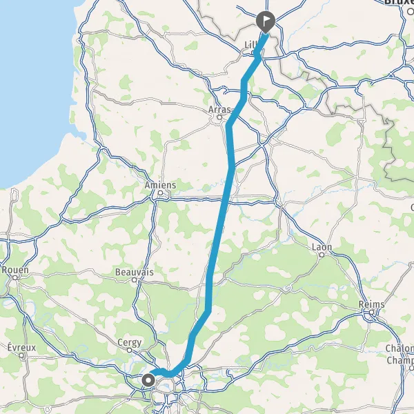 Continuer E19 (Autoroute du Nord) sur 124 kilomètres