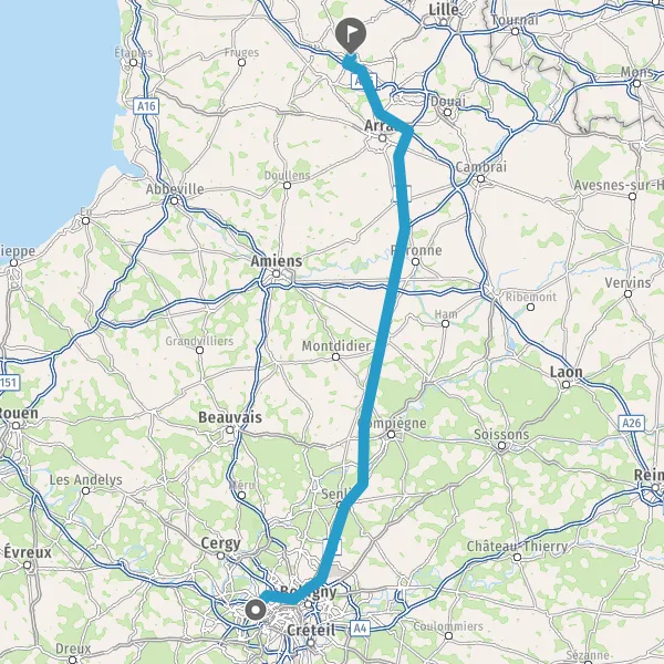 Prendre à gauche et rejoindre A26 E15. Continuer sur 33 kilomètres