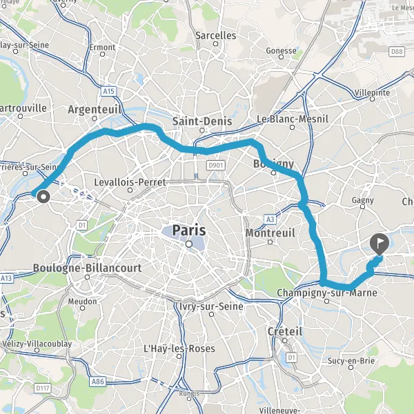 Prendre à droite et rejoindre A86. Continuer sur 3,3 kilomètres