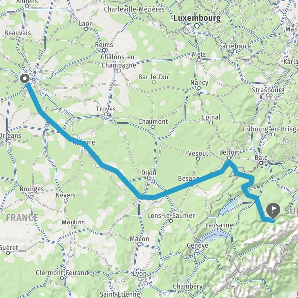 Prendre à droite et rejoindre A36. Continuer sur 82 kilomètres