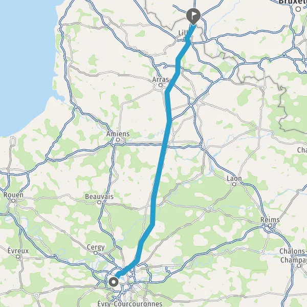 Continuer E19 (Autoroute du Nord) sur 124 kilomètres