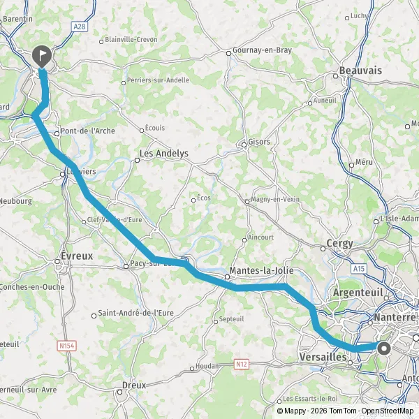| Distance en voiture | 122 km à 135 km |