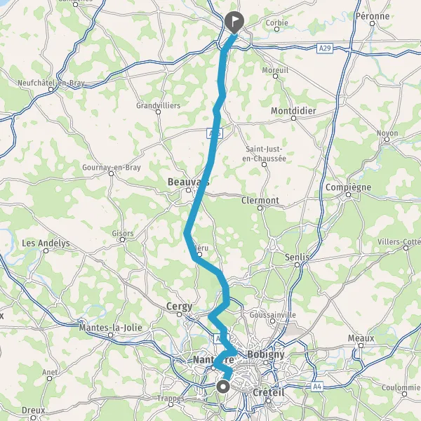 Prendre à droite et rejoindre A115. Continuer sur 10 kilomètres