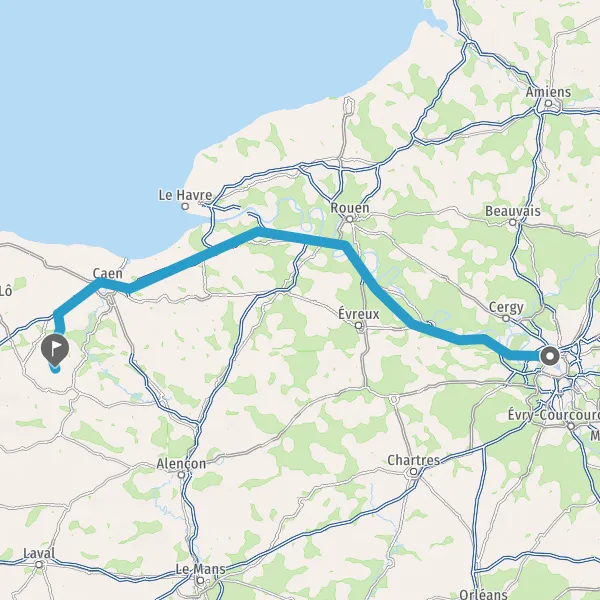 Prendre à droite et rejoindre A84 E401. Continuer sur 21 kilomètres