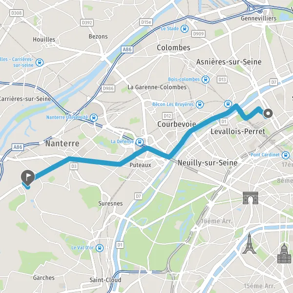 | Distance en voiture | 12,3 km à 15,6 km |
