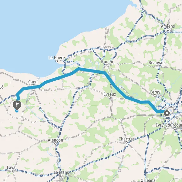 Prendre à droite et rejoindre A84 E401. Continuer sur 21 kilomètres