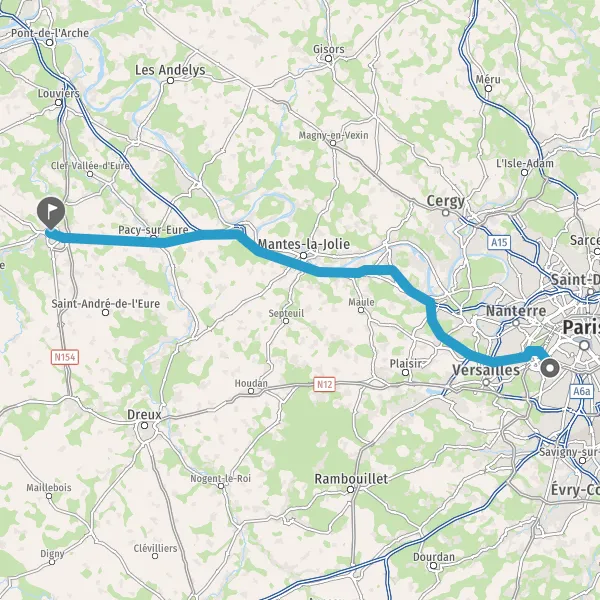 Sortir et rejoindre N13 (Route Nationale 13). Continuer sur 500 mètres