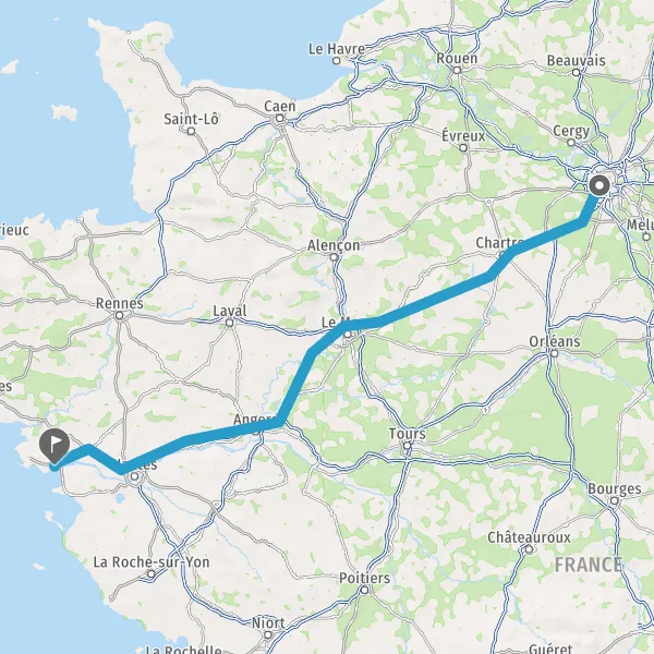 Continuer E501 (L'Océane) sur 165 kilomètres
