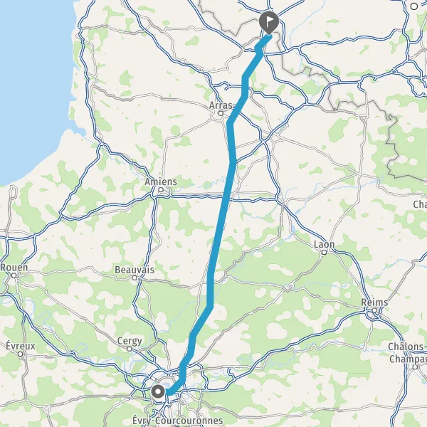 Continuer E19 (Autoroute du Nord) sur 124 kilomètres