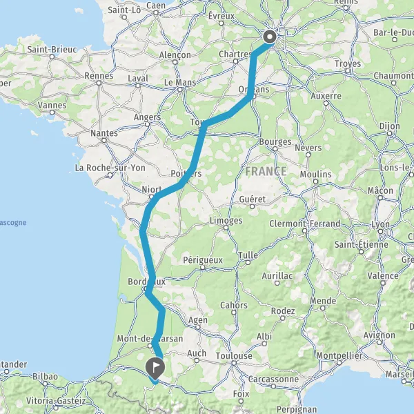 Prendre à droite et rejoindre A65. Continuer sur 149 kilomètres