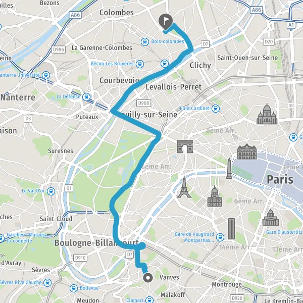 | Distance en voiture | 13,4 km à 15,4 km |