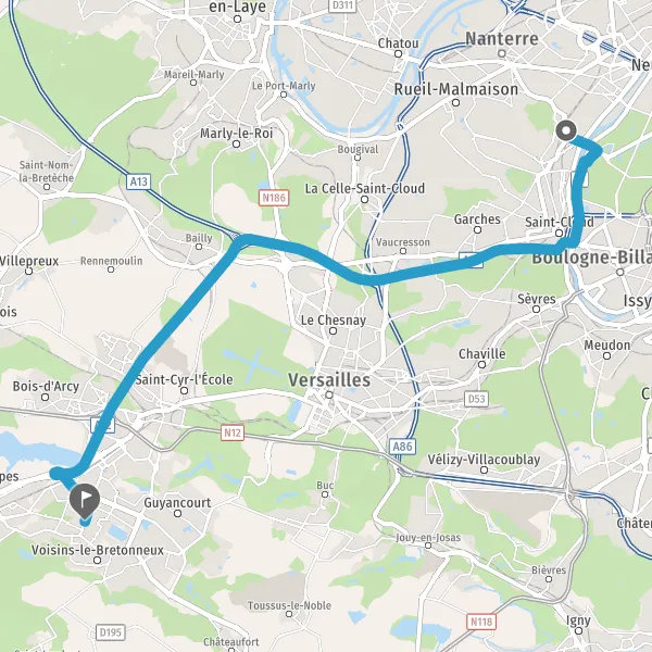 Avec le mode voiture, vous pouvez configurer vos options (type de véhicule, autoroute ou non, péage ou non, distance la plus courte), tout en ayant accès aux infos de circulation grâce à notre service d'info-trafic en temps réel. Ainsi faites des économies sur le coût ou la durée de votre voyage, en trouvant le trajet Suresnes Montigny-le-Bretonneux adapté à vos besoins.