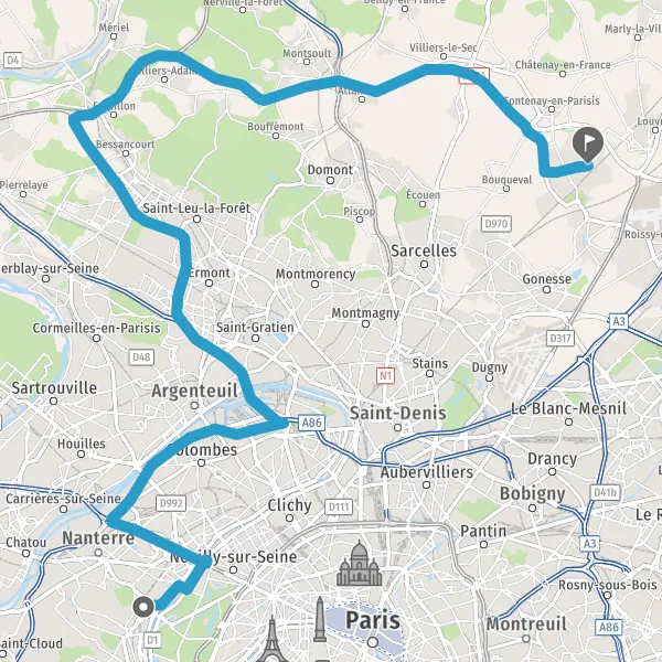 N2SenlisGonesseDugny-Pont-YblonZone Industrielle du CoudrayLe BourgetMusée de l'Air et de l'Espace