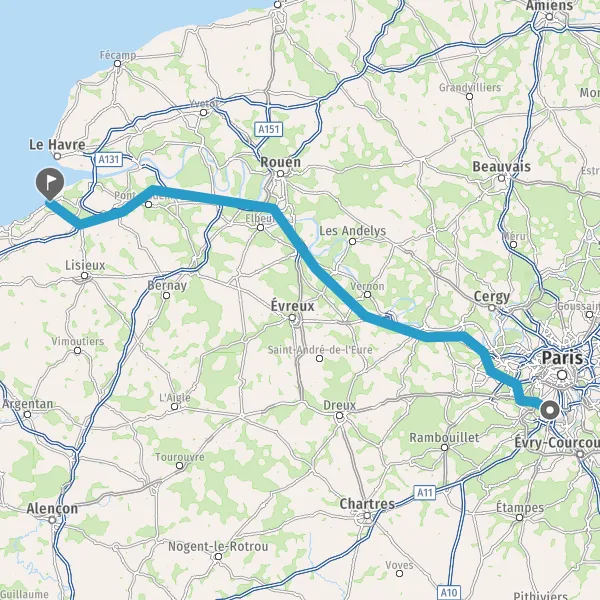 Prendre à gauche et rejoindre A13 E5. Continuer sur 32 kilomètres