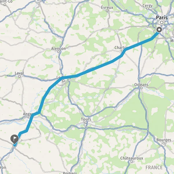 Prendre à droite et rejoindre A11 E50. Continuer sur 147 kilomètres
