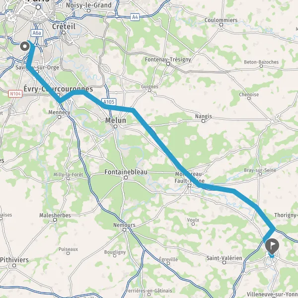 Prendre à gauche et rejoindre A6. Continuer sur 103 kilomètres