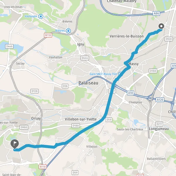Au rond-point, prendre la 2ème sortie sur Rue des Hautes Bièvres et continuer sur 400 mètres