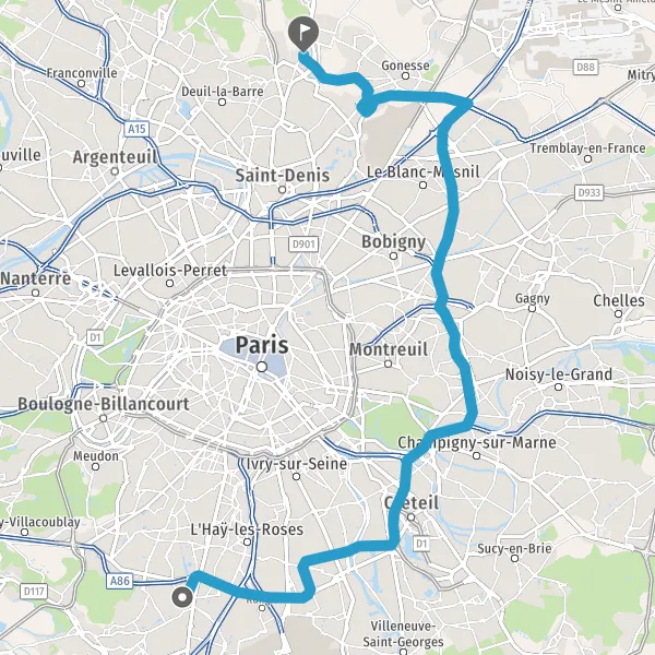 Continuer et rejoindre A86 D986. Continuer sur 17 kilomètres