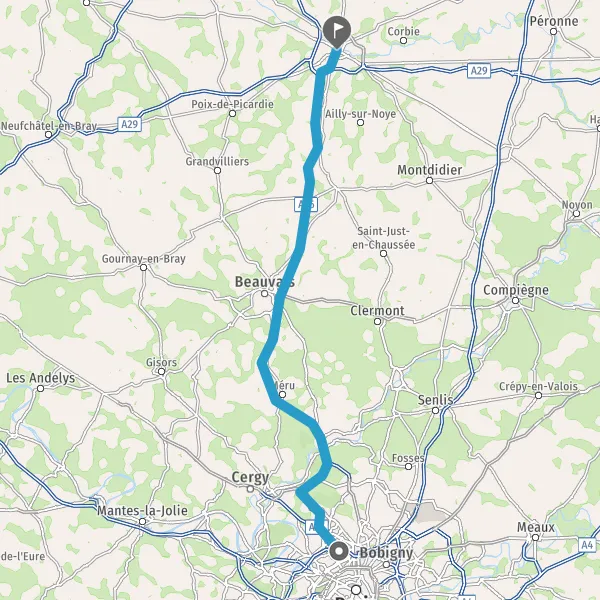 Prendre à droite et rejoindre A115. Continuer sur 10 kilomètres