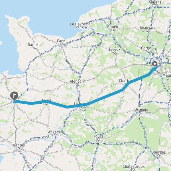 Prendre à droite et rejoindre A11 E50. Continuer sur 147 kilomètres