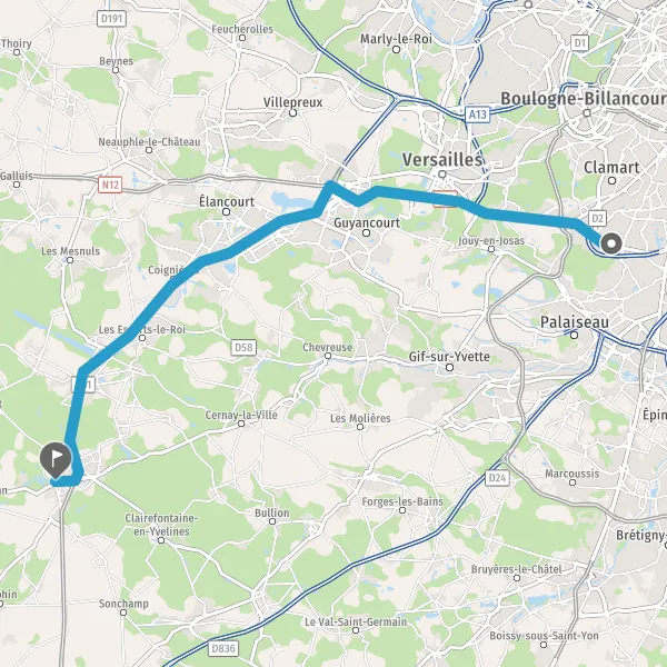 Sortir et rejoindre 5 Saint-Cyr-L'École. Continuer sur 850 mètres