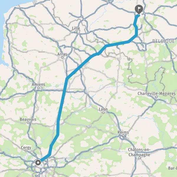 Continuer E19 (Autoroute du Nord) sur 124 kilomètres