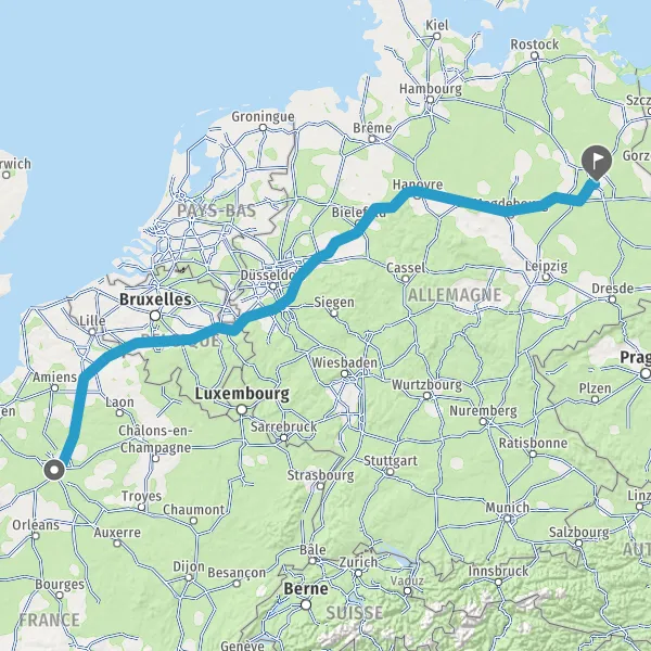 Continuer A2 A2 E30 sur 216 kilomètres
