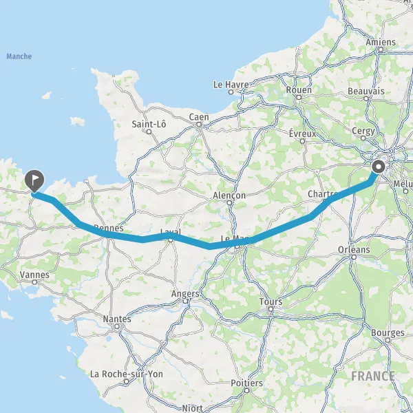 Prendre à droite et rejoindre A11 E50. Continuer sur 147 kilomètres