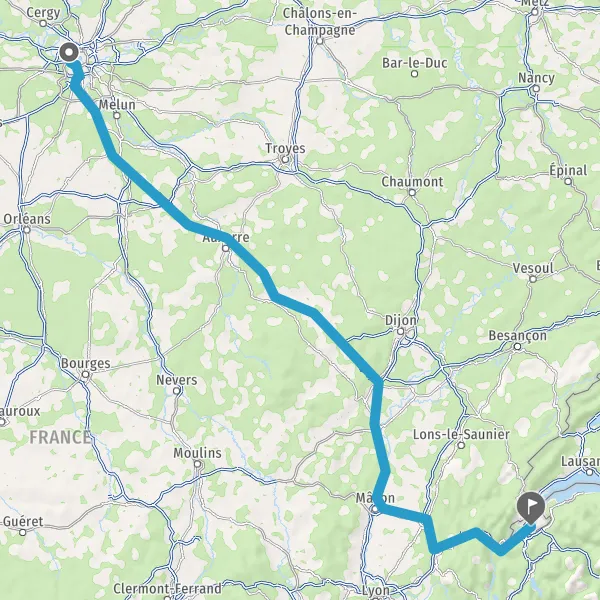 Prendre à gauche et rejoindre A6. Continuer sur 292 kilomètres