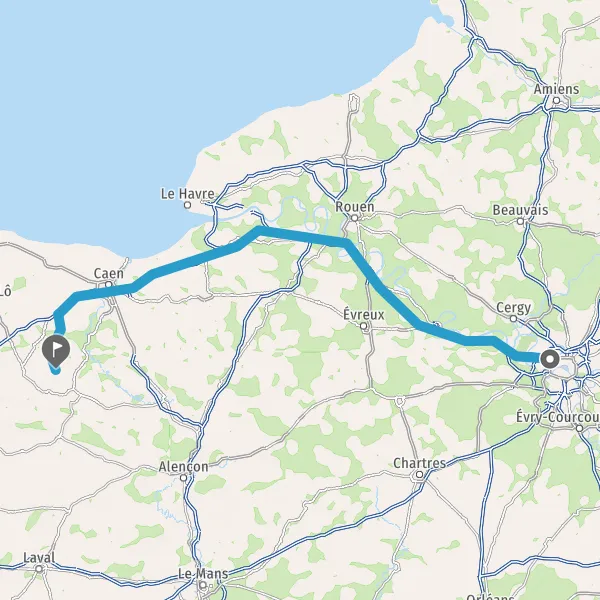 Prendre à droite et rejoindre A84 E401. Continuer sur 21 kilomètres