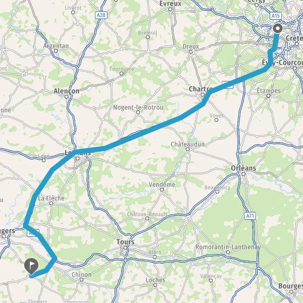 Prendre à droite et rejoindre A11 E50. Continuer sur 147 kilomètres