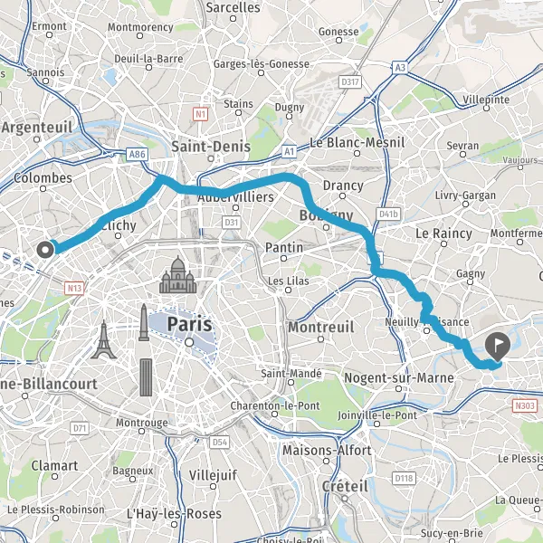 Prendre à droite et rejoindre A86. Continuer sur 3,3 kilomètres