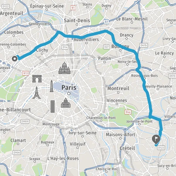 Tourner légèrement à droite sur D9 D106 (Rue de Colombes) et continuer sur 50 mètres