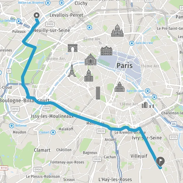Tourner légèrement à droite sur Quai de Dion Bouton et continuer sur 300 mètres