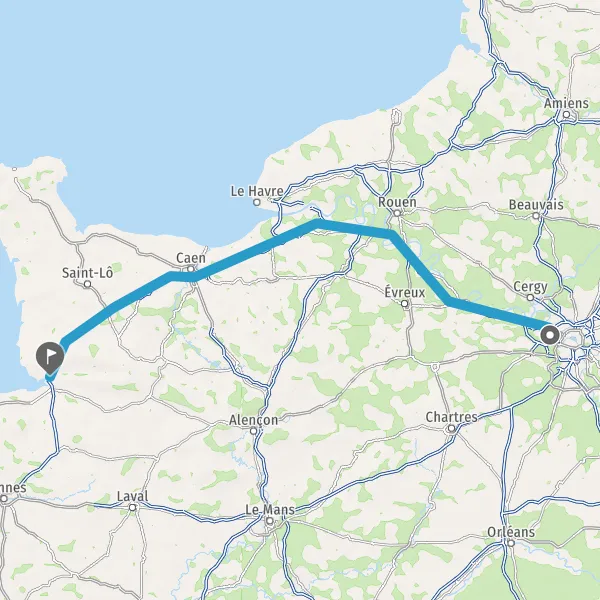 Prendre à droite et rejoindre A84 E401. Continuer sur 93 kilomètres