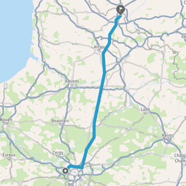 Continuer E19 (Autoroute du Nord) sur 124 kilomètres