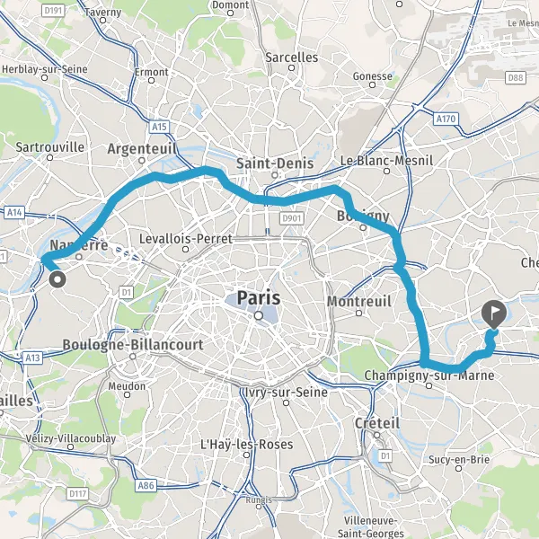 Prendre à droite et rejoindre A86. Continuer sur 3,3 kilomètres