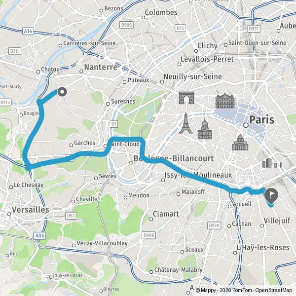 Tourner légèrement à droite sur D907 (Route de la Reine) et continuer sur 600 mètres