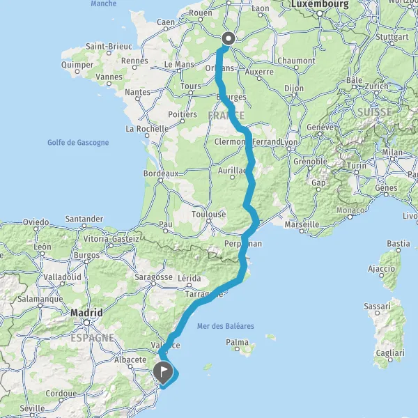 Prendre à droite et rejoindre A9. Continuer sur 120 kilomètres