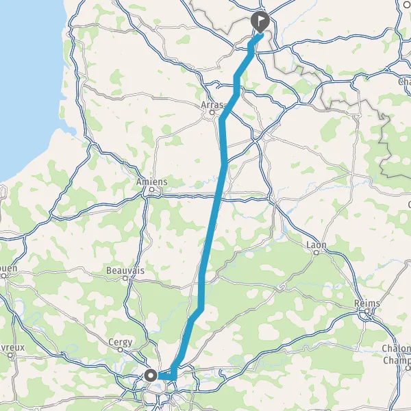 Continuer E19 (Autoroute du Nord) sur 124 kilomètres