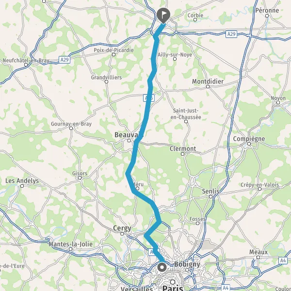 Prendre à droite et rejoindre A115. Continuer sur 10 kilomètres