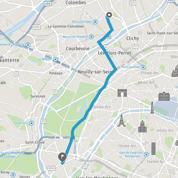 | Distance en voiture | 11,5 km à 12,7 km |