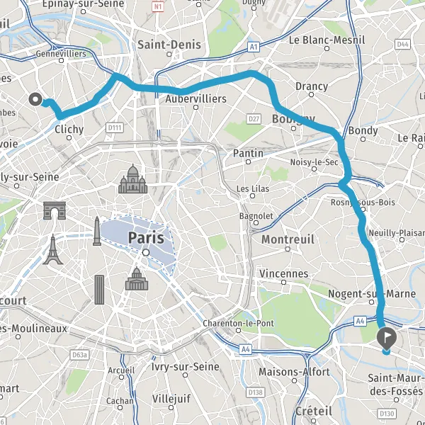 | Distance en voiture | 23,7 km à 27,8 km |