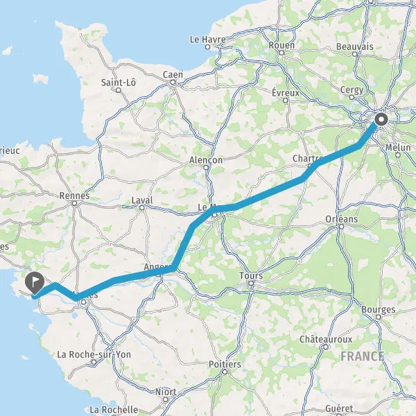 Continuer E501 (L'Océane) sur 173 kilomètres