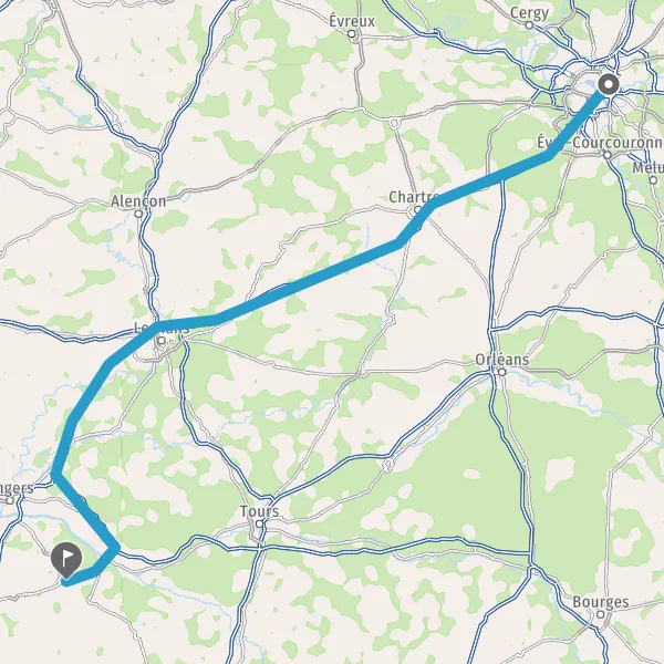 Prendre à droite et rejoindre A11 E50. Continuer sur 147 kilomètres