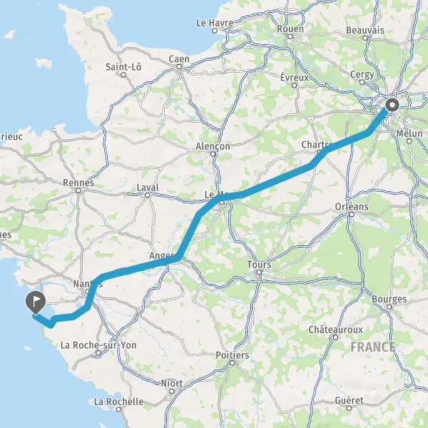 Continuer E501 (L'Océane) sur 165 kilomètres