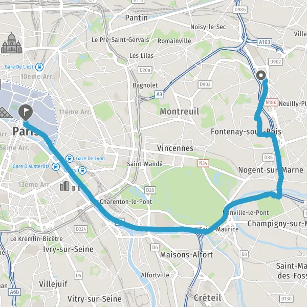 | Distance en voiture | 14,6 km à 19,8 km |
